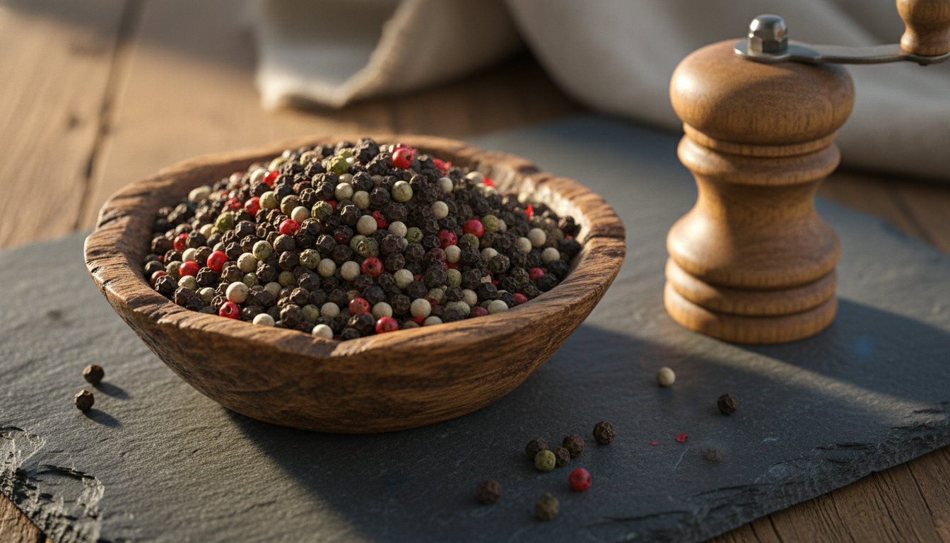 Discover whole peppercorns for fresh grinding — black, white, green, and pink varieties explained, with sourcing tips, cooking uses, and tea applications.